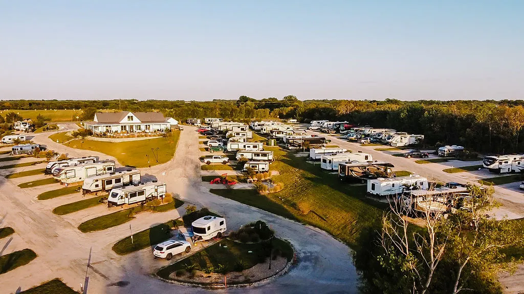 No ordinary RV park — coffee bar, pond walks, co-working, heated pool, and oversized landscaped patios. In Anna, TX, just 15 minutes from McKinney.